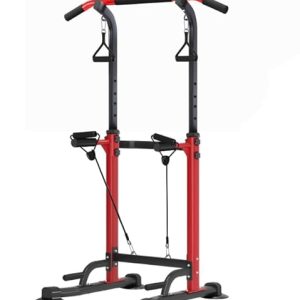Leiblsufo Station de traction et de dips – Tour d’alimentation réglable en hauteur – Pour entraînement de force à domicile – Convient pour les adolescents, les femmes, les hommes (rouge)