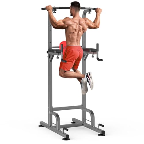 RELIFE REBUILD YOUR LIFE Chaise Romaine Musculation Power Tower Barre Traction Dips Entraînement Fitness Multifonction Domicile Pull Ups (Gris-1)